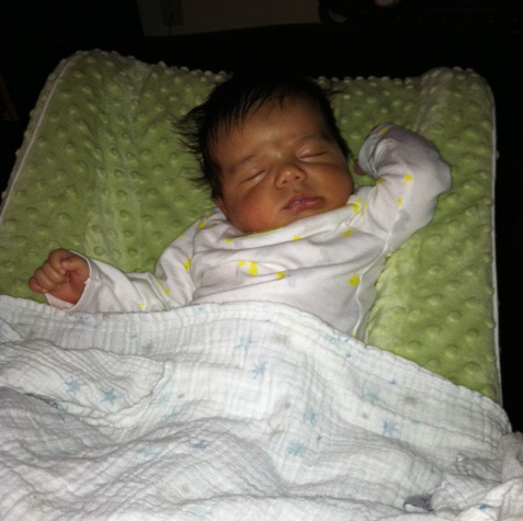 Nash had his 1 month appointment today and passed with flying colors. He is a good eater, an all hours of the night eater, but a good eater... Here he is in all his hairy glory at his Aunt Ginny's Fiesta Engagement party.